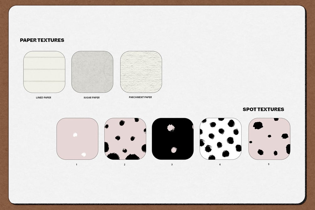 + BONUS OF - 5 SPOT SCATTER TEXTURES and 3 PAPER TEXTURES
